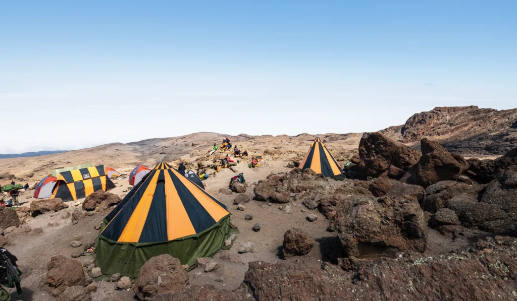 The trail continues upward to Barafu Camp, your last stop before the summit. The air thins and temperatures drop, but excitement builds. You’ll have an early dinner and a briefing before resting in preparation for your midnight summit push. From camp, enjoy views of Mawenzi Peak glowing in the setting sun.